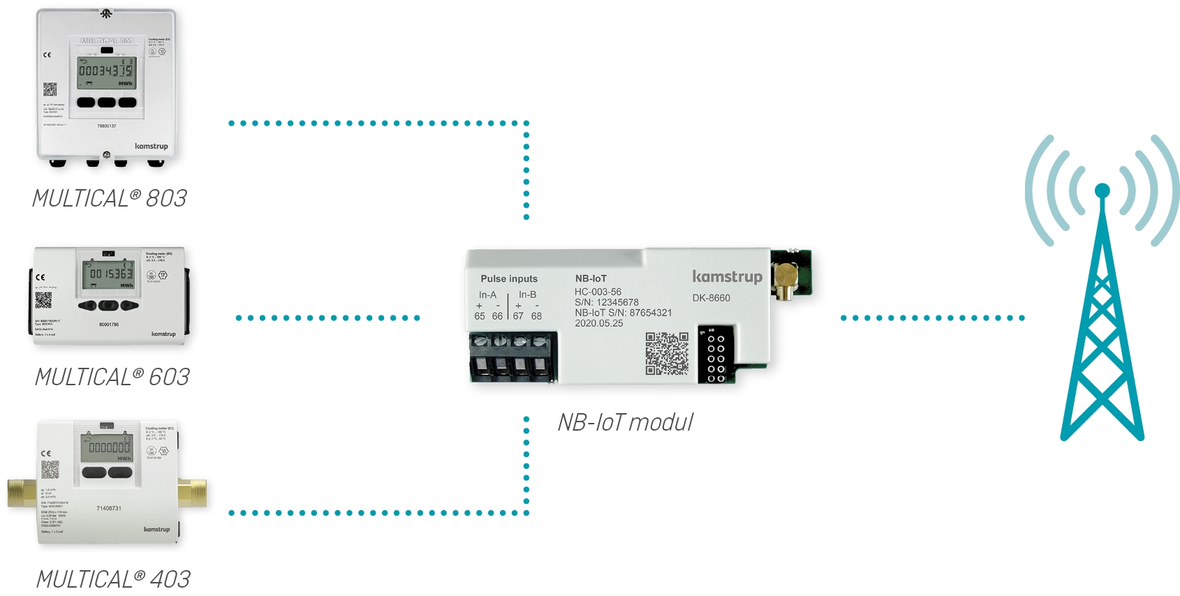Az NB-IoT egy point-to-point kommunikációs technológia, amelyet a 5G stratégia sarokköveként fejlesztettek ki, és amely a távközlési tulajdonú mobilkommunikációs (LTE) antennahelyek meglévő infrastruktúráját használja fel. A kiváló lefedettségre és kis adatmennyiségre optimalizált NB-IoT a legjobb választás az okos fogyasztásmérők távoli leolvasására, ha azok a föld alatt, aknában, pincékben és más nehezen elérhető helyeken találhatók, ahol más típusú kommunikációs technológia már nem használható.