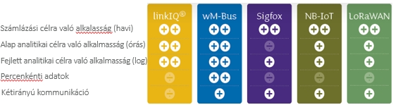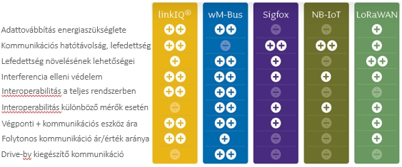A linkIQ® egy szabványos kommunikációs technológia, mely az EN13757-4:2005 és 2012 vezeték nélküli M-Bus szabványon alapszik (annak továbbfejlesztése), és a 868 MHz szabad frekvenciasávban működik. Ennek köszönhetően képes kommunikálni az általános vezeték nélküli M-Bus-t használó eszközökkel is. A megoldás a legkisebb kompromisszumot köti a fent említett követelmények tekintetében, hiszen célirányosan okos fogyasztásmérők távleolvasására fejlesztették ki. A linkIQ® hálózat adatgyűjtő egységei nagy hatótávolságot és lefedettséget kínálnak minimális eszközigénnyel.